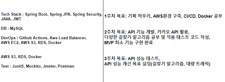 서비스적 예외처리, API 명세서, ERD 다이어그램, MVP 스팩, 3주간의 목표를 정했다.