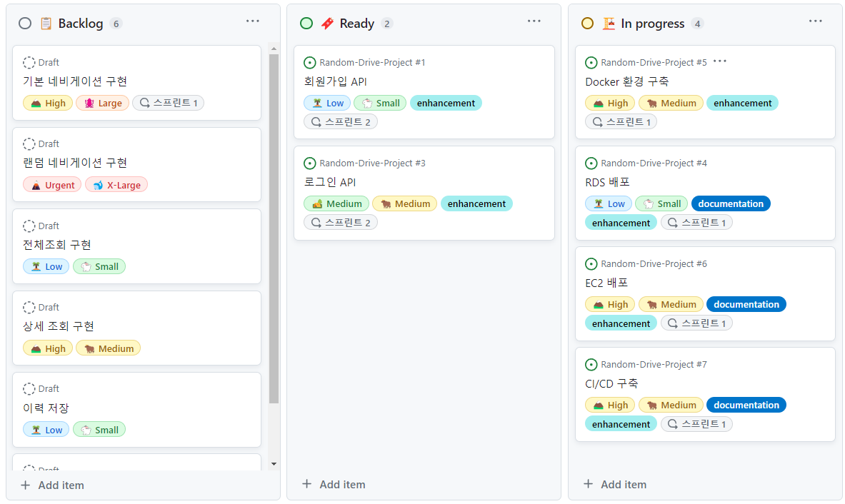 저녁시간 이후에는 Github Project를 만들었다.