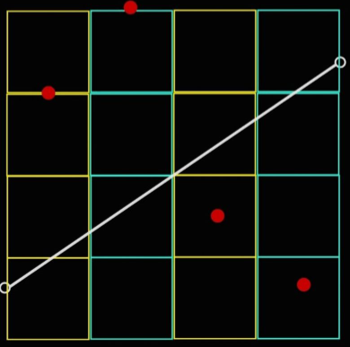 private List<RandomDocumentDto> getWayPointsAroundLine(double originY, double originX, double destinationY, double destinationX, Integer count) { double distance = calculateDistance(originY, originX, destinationY, destinationX); double realDistance = distance * 100; List<RandomDocumentDto> wayPoints = new ArrayList<>(); for (int i = 1; i <= count; i++) { double tempY = originY + (destinationY - originY) * i / count; double tempX = originX + (destinationX - originX) * i / count; double redius = Math.min(realDistance/count, 20); RandomDocumentDto wayPoint = getRandomWayPoint(tempY, tempX, redius); wayPoints.add(wayPoint); } return wayPoints; } - 큰 정사각형의 구간별 경유지 탐색 알고리즘